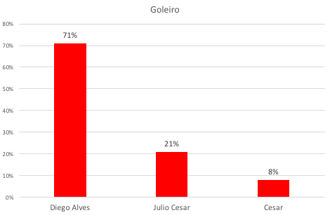 O volante mais lembrado foi Cuellar, com 33 votos, mesmo estando fora dos dois primeiros jogos da Libertadores. Ronaldo foi mencionado 16 vezes, enquanto Arão recebeu 10 votos. Impressionante como William Arão vem perdendo prestígio junto à torcida rubro-negra.